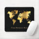 A graphic world map design by artist/designer Charmaine Paulson on a mouse pad. The text used here is Garamond Bold and the colour D0AA6C.