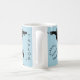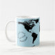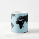Wrap-around world map with black continents over a light blue ocean, printed on a mug. Includes the text ‘Planning my next adventure’ and an optional name, both in black. Text and name fields are fully customizable or removable.