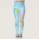 I designed these leggings for my daughter who travels extensively and works out everywhere. Now no matter where she is, she can find herself on her leggings. The countries are coloured in happy tones and set against aqua oceans. The very top of the leggings is shaded with a deeper shade of aqua for a slimming effect.