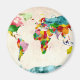 Map of the world with each country shown in a different colour. The countries are shown overlaid on a watercolor painted base.