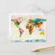 Map of the world with each country shown in a different colour. The countries are shown overlaid on a watercolor painted base.