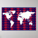 A cool graphic Map of the continents with a pattern background of red Sharks