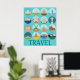 This poster features sixteen circular vector graphics of world monuments. The teal background, and the text, can be customised as desired.