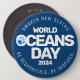 Make June 8th (World Oceans Day) a memorable event with this commemorative button, which features the 2024 theme "Awaken New Depths" encircling a stylised aquatic globe in the letter "O" of "Oceans".
