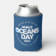 World Oceans Day Blue Stylised Earth Waves Can Cooler