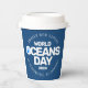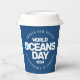 World Oceans Day Blue Stylised Earth Waves Paper Cups