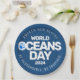 World Oceans Day Blue Stylised Earth Waves Paper Plate