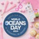 Make June 8th (World Oceans Day) a memorable event with these paper plates, which feature the 2024 theme "Awaken New Depths" encircling a stylised aquatic globe in the letter "O" of "Oceans".