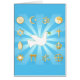 Gold symbols of international religions surround the World of Peace with a Dove on a sky blue ray background. Customise with your text. The mandala highlights twelve religious icons that express the global diversity of spiritual beliefs and harmony: Clockwise: Christianity, Hindu, Taoism, Baha’i, Buddhism, Jain, Shinto, Confucianism, Native Spirituality Medicine Wheel, Judaism, Sikh, Islam. *****Note gold colour is not metallic.*****