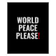 World peace please black, white and red text exclamation point minimalist modern anti war protest poster.