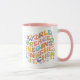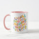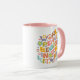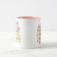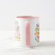 This "World peace starts in the kitchen" mug features a quote with flowers.