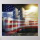 World Trade Centre with Flag Poster - Remembering Sept 11th