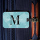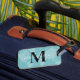 Travel the world in style! This elegant and modern luggage tag features an aqua green / blue map of the world background with black and white custom monogram that can be personalised with your first or last name and initial letter.