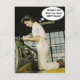 Design features World War II era woman factory worker. The perfect image of "Rosie the Riveter" Woman is wearing coveralls and has her hair up in her hair net. Shows woman thinking to herself "Should I tell them my name isn't Rosie?"