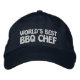 Fun hat with "WORLD'S BEST BBQ CHEF" text. Made for the perfect outdoor cook.