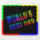 WORLD'S BEST DAD-MOUSEPAD---MULTI COLORED LETTERS--BACKGROUND COLOR CAN BE CHANGED----WORLD'S BEST DAD CAN BE CHANGED--FRAME CAN BE DELEATED-ADD YOUR OWN TEXT, CO. NAME,YOUR NAME,PHOTO OR FAVORITE QUOTE --DAD WILL SMILE WHEN HE GETS THIS MOUSEPAD.-- MAKES A GREAT GIFT.