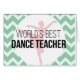 The statement "World's Best Dance Teacher" stands on top of a light pink ballerina in the arabesque pose. A border of mint chevron brings the design all together. A cute and trendy gift for those awesome teachers of dance :)