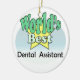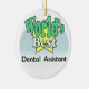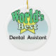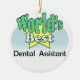 Leuke gift en verrassing voor wereld's best tandartsassistente! Afgebeeld op een ornament met een ster. Cleur: large, geel, blue en wit.