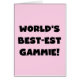Black text and white text World's Best-est Gammie T-shirts, mugs, hoodies, cards, tote bags, magnets, keepsakes, and other world's best gammie gear. Great gifts for great grandparents!