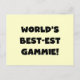 Black text and white text World's Best-est Gammie T-shirts, mugs, hoodies, cards, tote bags, magnets, keepsakes, and other world's best gammie gear. Great gifts for great grandparents!