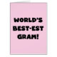 Black text and white text World's Best-est Gram T-shirts, mugs, hoodies, cards, tote bags, magnets, keepsakes, and other world's best gram gear. Great gifts for great grandparents!
