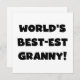 Black text World's Best-est Granny T-shirts, mugs, hoodies, cards, tote bags, magnets, keepsakes, and other world's best granny gear. Great gifts for great grandparents!