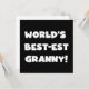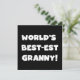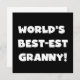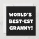 White text World's Best-est Granny T-shirts, mugs, hoodies, cards, tote bags, magnets, keepsakes, and other world's best granny gear. Great gifts for great grandparents!
