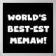 White text World's Best-est Memaw T-shirts, mugs, hoodies, cards, tote bags, magnets, keepsakes, and other world's best memaw gear. Great gifts for great grandparents!