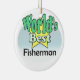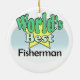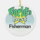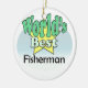 Fun gift and surprise for world's best fisherman! Depicted on an ornament with a star. Colors: green, yellow, blue, and white.