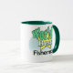 Wereld's beste Visser mok. Voor de beste Visser in de hele wereld! Als afbeelding een ster met daar achter de wereld.