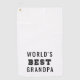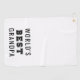 A unique golf towel gift for a golfer grandpa featuring "World's Best Grandpa" showcased in modern black lettering. Personalise whether he is addressed as grandpa, grandad, papa, etc.
