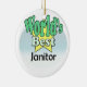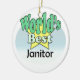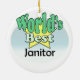Leuke gift en verrassing voor wereld's beste conciërge! Afgebeeld op een ornament met een ster. Kleuren: groen, geel, blauw en wit.