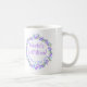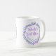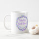 This mug has a floral design and room for text to celebrate Mother's Day or any other occasion. The floral design is in bright blue, lavender, and violet hues. Personalise the mug yourself, or message MineByDesign and we will customise any design you envision!