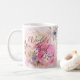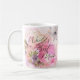 World's Best Mum Mother's Day Coffee Mug. The Perfect gift for mum for a Mother's Day Gift. Design has a gold heart and a pink floral watercolor background.