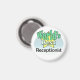 Wereld's beste receptionist(e) magneet. Voor de beste receptioniste de hele wereld! groene letters en op de achtergrond blauw met een gele ster