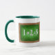 Mug features an original marker illustration of a green slate with a simple math equation, and WORLD'S BEST TEACHER in a fun font.