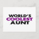 World's Coolest Aunt shirts, hats, buttons and more. Gifts for cool aunts when new niece or nephew arrives. Coolest Aunt clothing, tees, sweatshirts, sticker and gifts. Original, new cool Aunt keychains, mousepads, t-shirts and gifts!