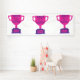 This banner features the words "World's Greatest Mother" displaying a yearbook bold print font with purple letters plus a winners wreath with number 1 in the centre over a pink coloured flat style cup trophy on a purple base in this Mother's Day theme. This banner has single side printing outdoor safe measures 4"x12" made with an elegant matte finish and is both fade and tear resistant for Indoors or outdoor use great for advertise anything, from birthdays to graduation, weddings to anniversaries. Hemmed and thermally welded edges for neat finish outdoor banners can be bought with metal grommets.