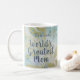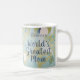 World's Greatest Mum Mixed Media Floral Mug. Pretty watercolor mixed media design with flowers and butterflies in soft pastel shades of blue and green. Includes decorative text, World's Greatest Mum and any name of choice. Add Your Own via the "Customise It" button. A stylish design with a beautiful message for your mother, stepmother, mother-in-law, stepmother, mother to be, first time mum, grandmothers and aunts. Ideal for Mother's Day, Mother's Birthday, Mother's Christmas present, and Just Because! Order TODAY and surprise your mother with a gift of love.