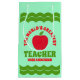 Personalised teacher appreciation small gift bag featuring a watercolor red apple with green leaf, the cute saying 'the world's greatest teacher', and their name.