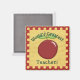 A square magnet with a red background and yellow polka dots. In the centre is the traditional red apple and the text "World's Greatest Teacher". This magnet would make a nice teacher appreciation thank you gift.