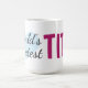 This cute and simple mug features a light blue heart with the words "World's Greatest Tita" in black and pink. The perfect birthday, Mother's Day, or thank you gift for that special aunt in your life!