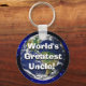 Cool key chain with an original detailed coloured photograph of Earth in space, photograph courtesy of NASA in the public domain. Lots of concepts for Earth Day, peace, unity, harmony, global warming, teamwork, ecology, environment, hope, love, travelling, etc. Shown is "World's Greatest Uncle!" which is great for Father's Day or his birthday, etc. Show your Uncle how you feel about him!
