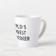 Worlds Okayest Co-worker funny quote latte coffee mug. Cute retirement or Birthday gift idea for employee, staff member, friend, coworker, co worker, volunteer, personnel. Work related office humour. Black and white drinkware with humourous saying / expression. Fun cup for best friends at desk job, company event, business meeting etc.