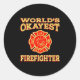 Worlds Okayest Firefighter Fireman Funny Firefight Classic Round Sticker