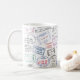 Mug with worldwide visa passport stamps printed on it.