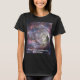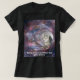 Cute Space Kitten series tee shirt entitled Worm Hole, with graphics of a grey striped kitten coming through a space worm hole. White text reads Going where no kitten has gone before. Personalise the text to read what you want.