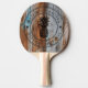Worn Blue Wash Wood Pineapple Wedding Crest & Name Ping Pong Paddle