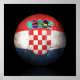 This unique design features the flag of Croatia painted onto a football or soccer ball. Rough textures and scratches gives the ball an aged and well used look. A reflection appears just underneath the ball which helps to create a three dimensional effect. This beautiful Croatian themed sports design is a perfect way to show of your National patriotism.