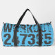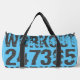 Worn out and scratched text Workout 247365 blue Duffle Bag